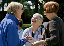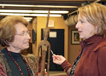 Harriet chats with traveler Zeren Earls during an event at O.A.T.’s headquarters in Boston.