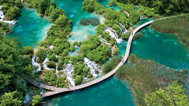 Deep within Croatia’s mountainous central region, a stone’s throw from the border with Bosnia and Herzegovina, lies one of Europe’s most intriguing natural wonders: Plitvice Lakes National Park. Stretching out over 114 heavily-forested square miles, this UNESCO World Heritage Site is comprised of 16 turquoise, green, and azure lakes laced together by waterfalls coursing over limestone ridges. This collection of pools is divided into an upper section—home to the park’s largest lake—and a lower section, featuring the tallest waterfall in Croatia. Both can be explored via wooden footpaths that snake over crystalline waters rimmed by beech, spruce, and fir trees, and adorned with tiny rainbows tossed into the air by the cascades’ spray.