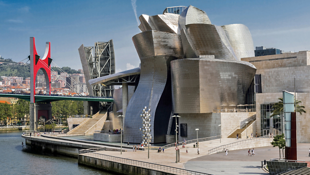 An industrial port city in the heart of Spain’s Basque Country, Bilbao is an intriguing mix of traditional and modern. The unquestionable star of Bilbao’s cityscape is the Guggenheim Museum, designed by postmodern architect Frank Gehry. The building is a shimmering, sculptural icon that captures the imagination before you even step foot inside to view its contents—one of the world’s premier collections of contemporary art. The museum and its audacious silhouette made Gehry a household name and put Bilbao on the map.